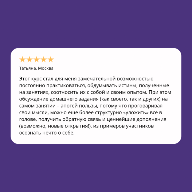 - Участник курса имеет возможность пройти итоговое индивидуальное занятие по курсу, а также при необходимости взять индивидуальную экспертизу по любой из тем курса (оплачивается дополнительно).